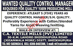 Apply as per details in job advertisement. Login to view further details of how to apply via https://www.jobz.pk online.