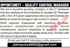 Upcoming Job 2026: Quality Control Manager Job Opportunity