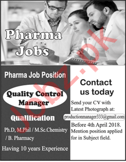 Apply as per details in job advertisement. Login to view further details of how to apply via https://www.jobz.pk online.