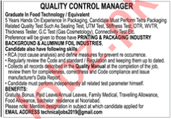 Vacancies in Printing & Packaging Co Advertisement May 2020