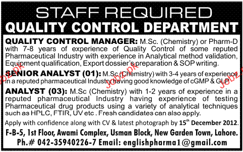 Apply as per details in job advertisement. Login to view further details of how to apply via https://www.jobz.pk online.