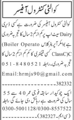 Quality Control Officer & Boiler Operator Jobs 2024