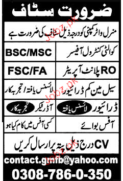 Quality Control Officers, RO Plant Officers Cum Drivers Want