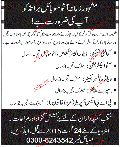 Apply as per details in job advertisement. Login to view further details of how to apply via https://www.jobz.pk online.