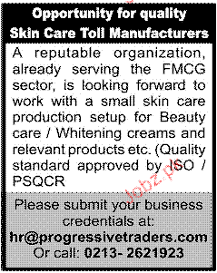 Quality Skin Care Toll Manufacturers Job Opportunity