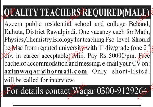 Latest Private Company Teaching Posts Islamabad 2025