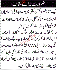 Latest Private Company Industrial Posts Rawalpindi 2025