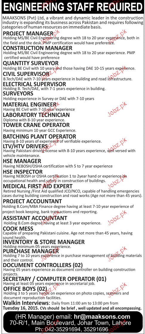 Apply as per details in job advertisement. Login to view further details of how to apply via https://www.jobz.pk online.
