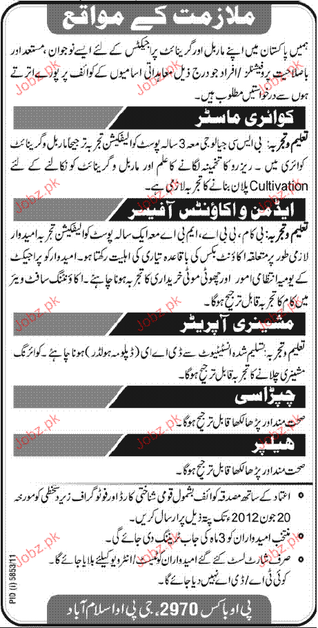 Apply as per details in job advertisement. Login to view further details of how to apply via https://www.jobz.pk online.