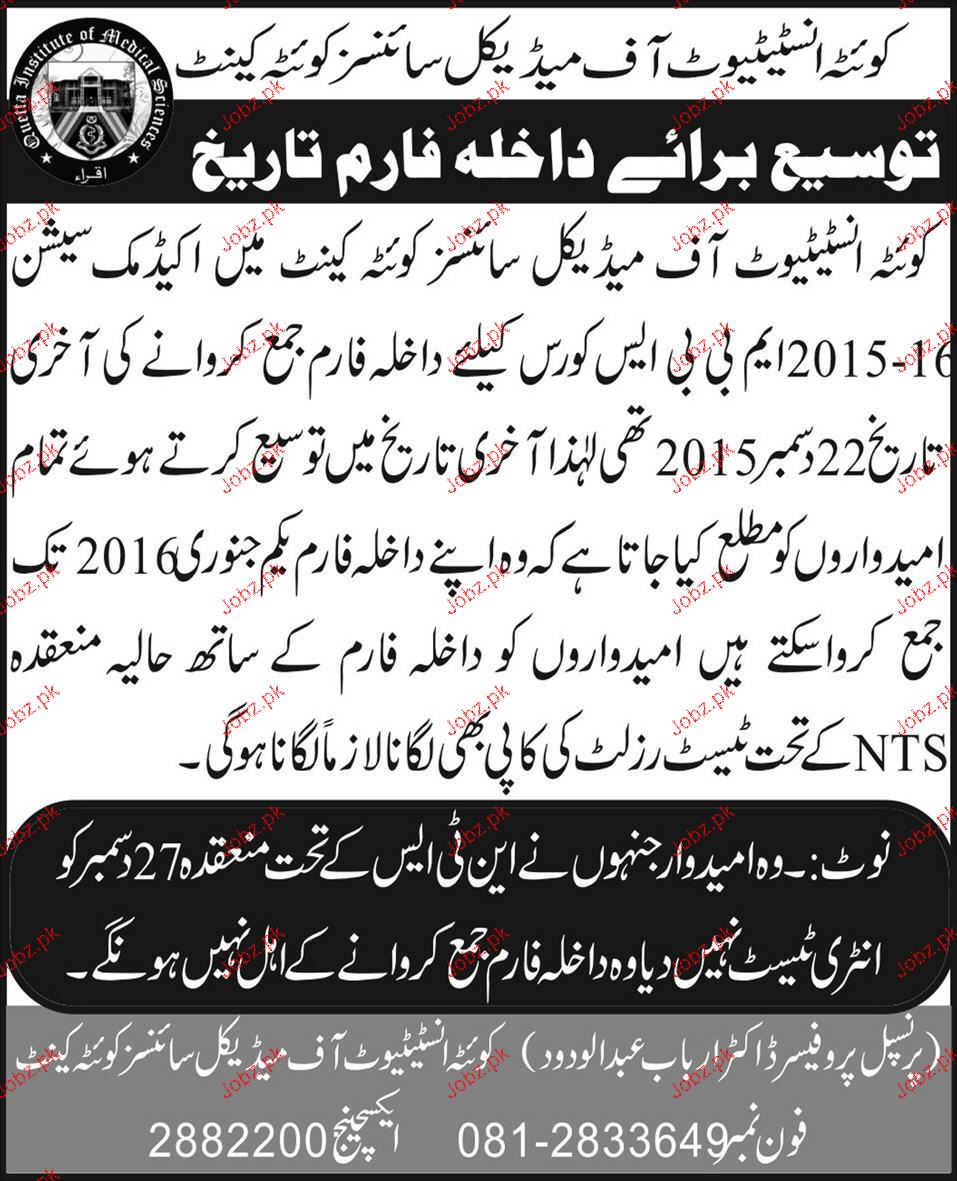 Quetta Institute of Medical Sciences Admission in MBBS in Quetta. Read newspaper ad for exact details.
