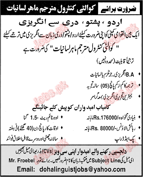 Apply as per details in job advertisement. Login to view further details of how to apply via https://www.jobz.pk online.
