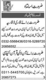 Quran Teacher & Qari Jobs 2022 in Islamabad