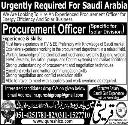 Vacancies in Qureshi Manpower Bureau Advertisement March 2022