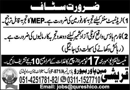 Qureshi Manpower Bureau Rawalpindi Jobs 2025