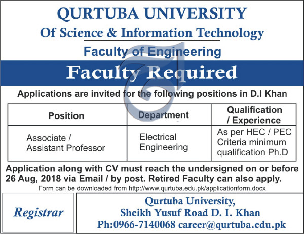Latest Qurtuba University of Science & Information Technology Teaching Posts Dera Ismail Khan 2025