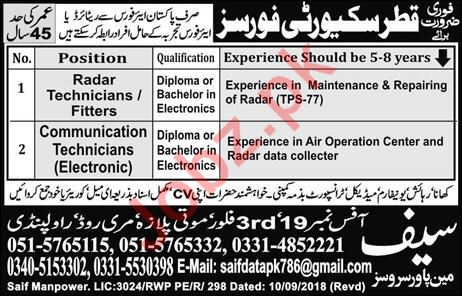 Vacancies in Saif Manpower Services Advertisement September 2018