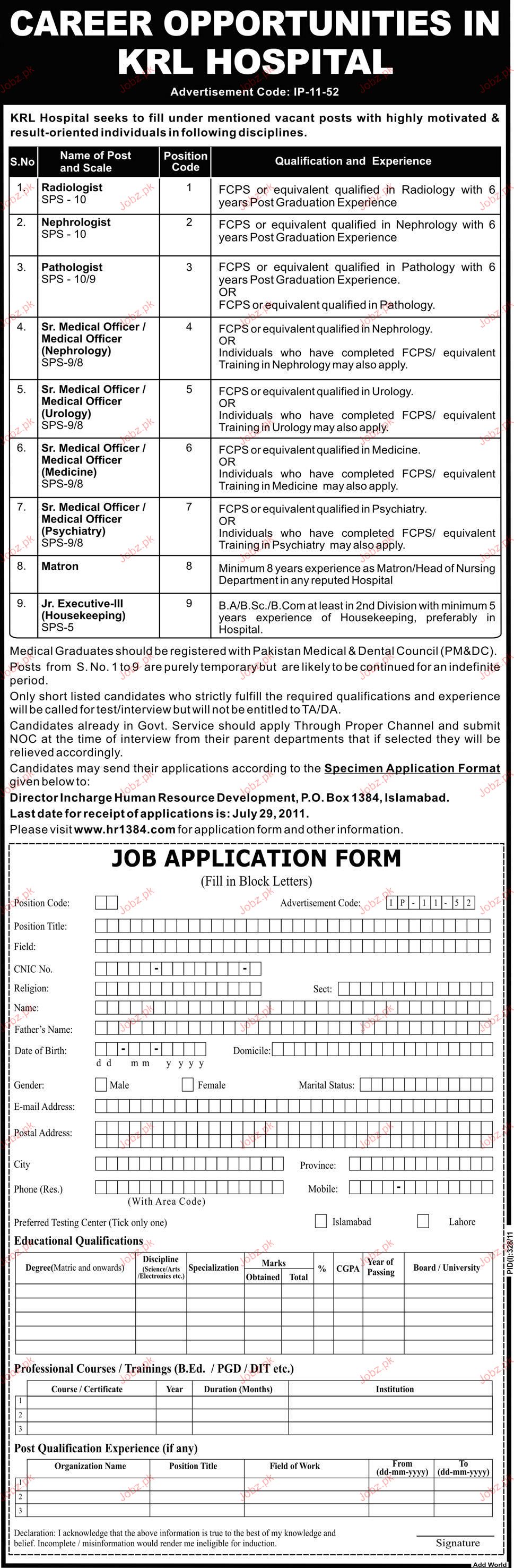 Apply as per details in job advertisement. Login to view further details of how to apply via https://www.jobz.pk online.
