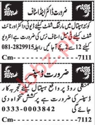 Latest Hospital Clinic Medical Posts Quetta 2025