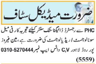 Latest Diagnostic Centre Medical Posts Lahore 2025