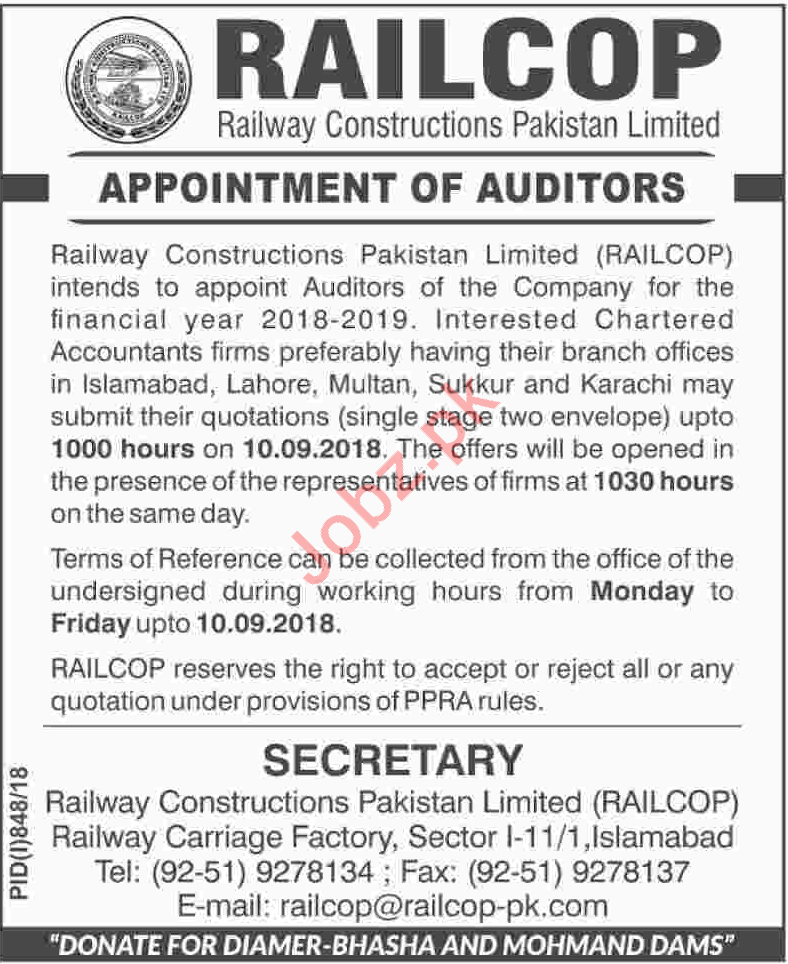 RAILCOP Railway Constructions Pakistan Limited Jobs 2018