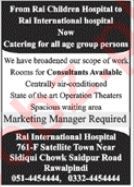 RaL International Hospital RIH Rawalpindi, rawalpindi Punjab Pakistan invites applications from eligible candidates for the post of consultant and marketing manager as per advertisement of October 14, 2024 published in daily Jang Newspaper. Educational qualifications required Master, Bachelor and MS etc.
