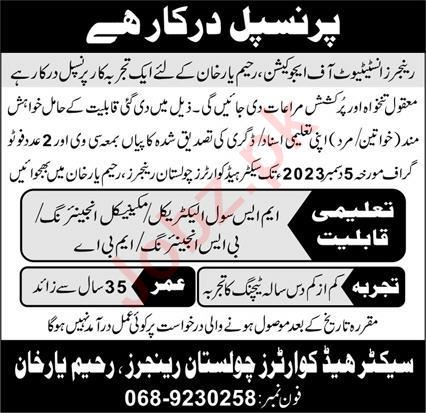 Rangers Institute of Education is looking for candidates for following posts as per job advertisement published in daily Express Newspaper of November 26, 2023 for location Rahim Yar Khan, rahim yar khan Punjab Pakistan: