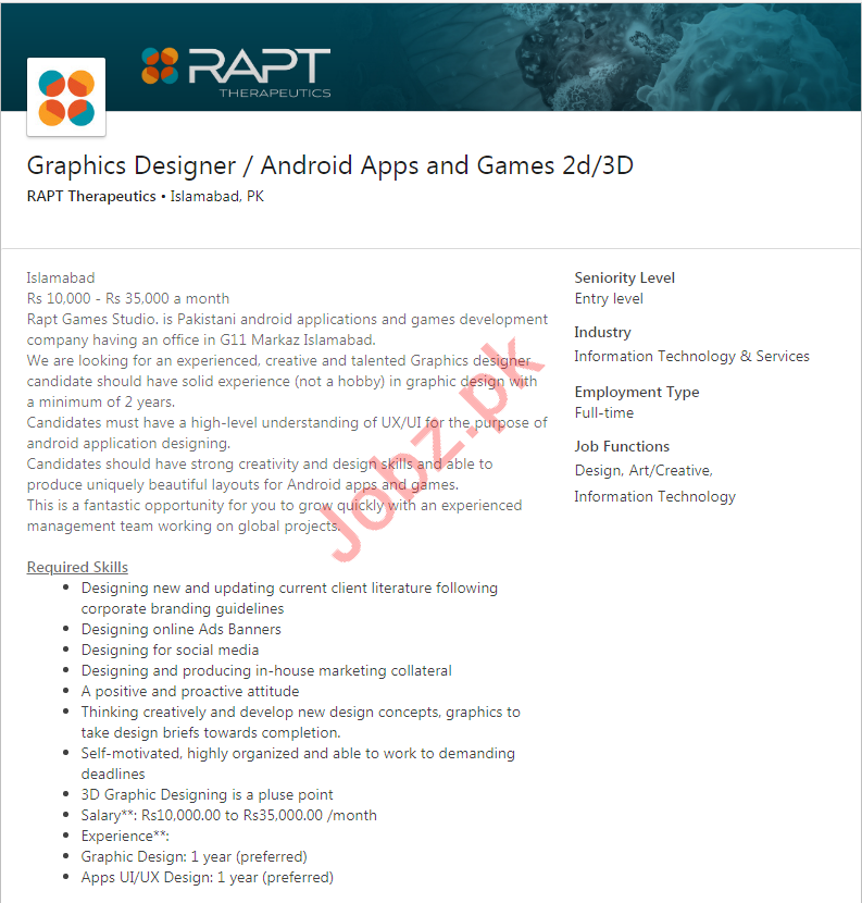 RAPT Therapeutics Islamabad Jobs for Graphic Designer