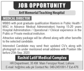 Vacancies in Rashid Latif Medical Complex RLMC Advertisement September 2020