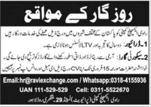 Ravi Exchange Lahore Jobs 2022 for Security Guard
