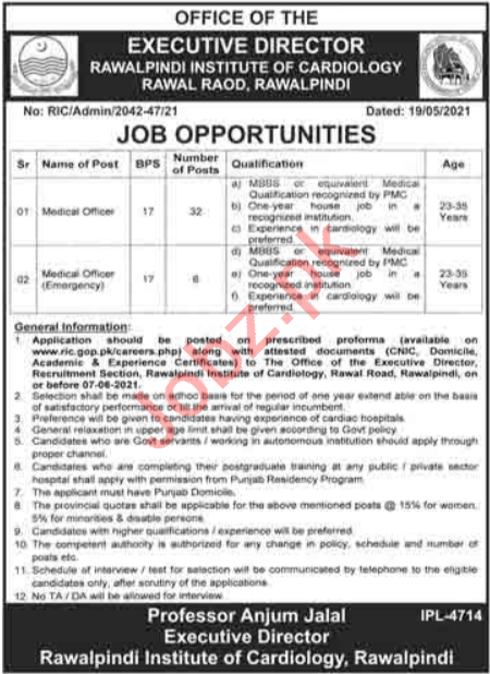 Vacancies in Rawalpindi Institute of Cardiology Advertisement May 2021