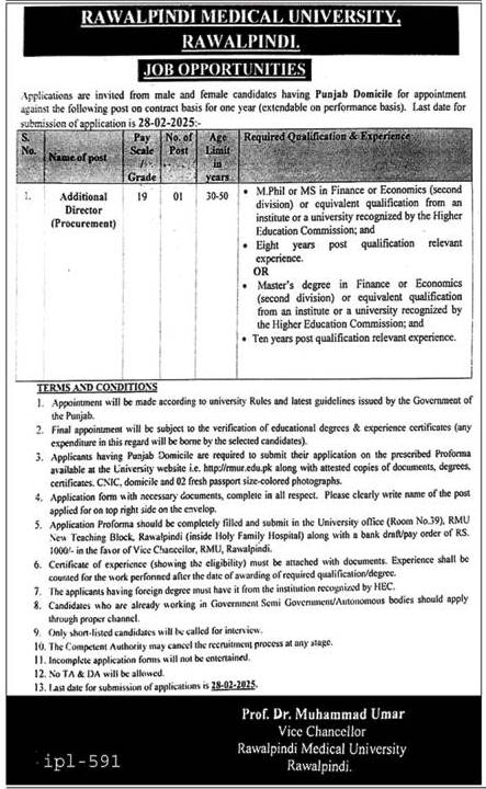 Vacancies in Rawalpindi Medical University Advertisement February 2025