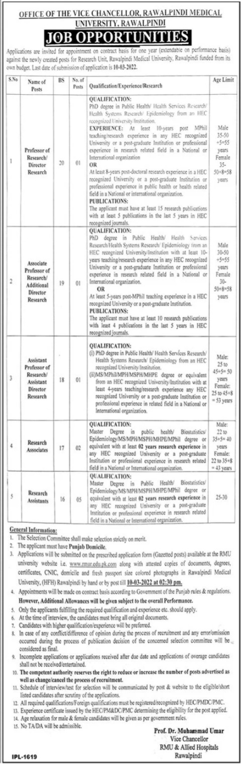 Rawalpindi Medical University RMU Professor Jobs 2022
