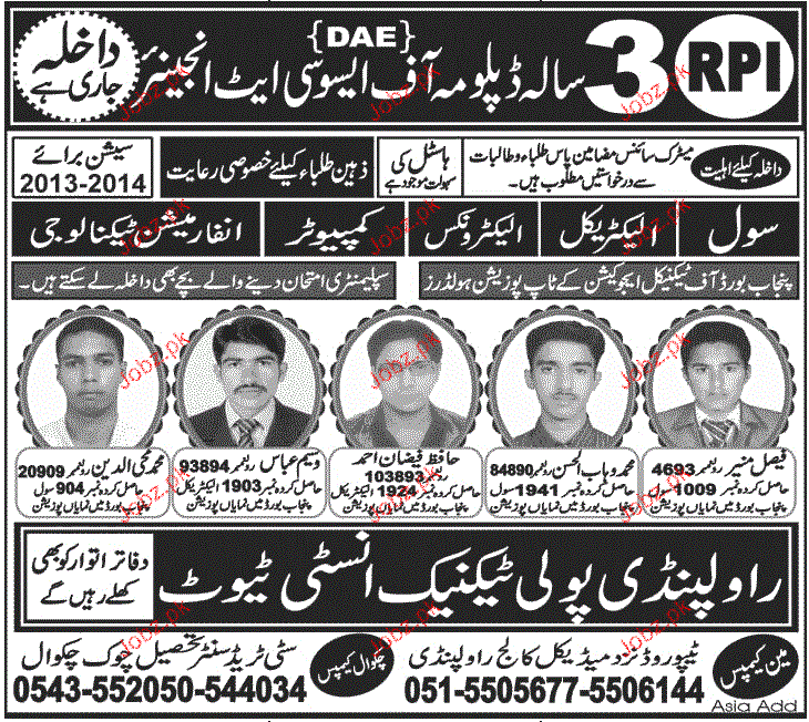 Rawalpindi Polytechnic Institute Admission in DAE in Lahore Read newspaper ad for exact details.