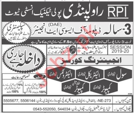 Rawalpindi Polytechnic Institute DAE Admissions 2019