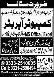 Vacant posts including computer operator are announced in Rawan Marwa Recruitment Overseas Employment Promoters Rawalpindi, rawalpindi Punjab Pakistan as per 17 November 2025 advertisement in daily Express Newspaper. Candidates with Matric and Intermediate etc. educational background will be preferred.