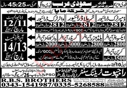 RBS Brothers invites applications for job positions advertised in daily Express dated 10 March 2024 for following vacancies in Riyadh, riyadh Saudi Arabia.