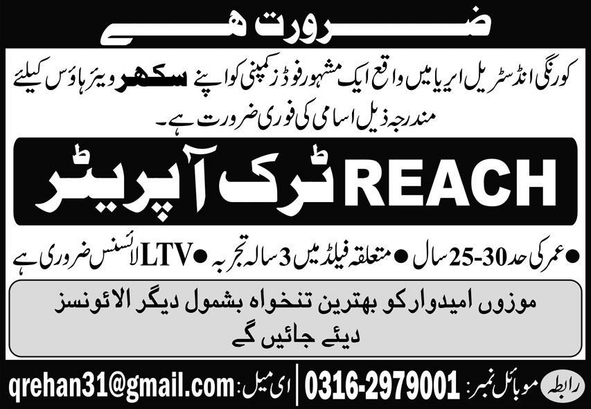 Food Company invites applications for job positions advertised in daily Express dated 1 May 2022 for following vacancies in Sukkur, sukkur Sindh Pakistan.