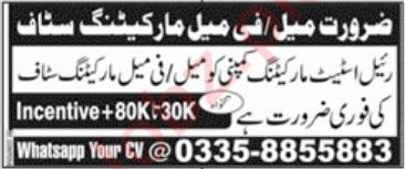 Real Estate Marketing Company invites applications for job positions advertised in daily Jang dated 24 July 2022 for following vacancies in Rawalpindi, rawalpindi Punjab Pakistan.