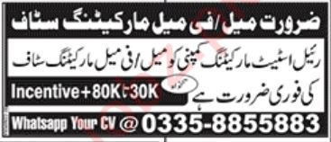 Real Estate Marketing Company Rawalpindi, rawalpindi Punjab Pakistan invites applications from eligible candidates for the post of male staff and female staff as per advertisement of September 25, 2022 published in daily Jang Newspaper. Candidates with Bachelor and Master etc. educational background will be preferred.