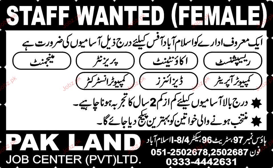 Apply as per details in job advertisement. Login to view further details of how to apply via https://www.jobz.pk online.