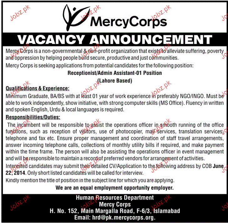 Apply as per details in job advertisement. Login to view further details of how to apply via https://www.jobz.pk online.