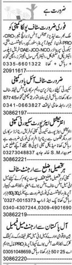 Private jobs advertisement dated about 10 October 2023 in daily Express Newspaper invites application for the vacant post of marketing staff, manager, branch manager, security supervisor, field staff, retired government staff, office staff, store keeper, pro, helper, nco, field worker, retired person, receptionist, accountant, office boy, clerk, phone operator, computer operator, customer relations officer cro and munshi in Faisalabad, faisalabad Punjab Pakistan. Preferred Education is Master, Middle, Intermediate, Matric and Bachelor etc.