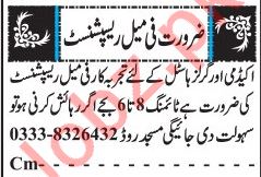 Receptionist Job 2019 For Academy & Hostel In Quetta