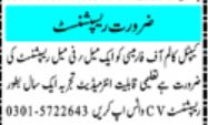 Capital College Of Pharmacy & Health Sciences jobs advertisement dated about 10 October 2023 in daily Mashriq Newspaper invites application for the vacant post of receptionist and female receptionist in Peshawar, peshawar Khyber Pakhtunkhwa KPK Pakistan. Intermediate etc. educational qualification will be preferred.