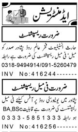Private Company is looking for candidates for following posts as per job advertisement published in daily Aaj Newspaper of December 3, 2022 for location Peshawar, peshawar Khyber Pakhtunkhwa KPK Pakistan: