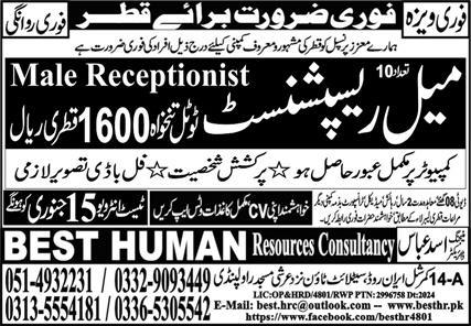 Best Human Resources Consultancy invites applications for job positions advertised in daily Express dated 14 January 2025 for following vacancies in Doha, doha Qatar.