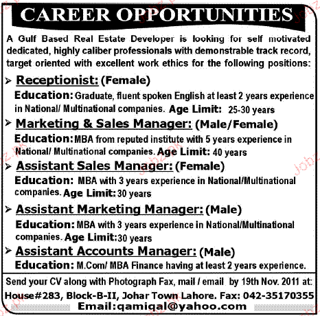 Latest Private Company Sales Posts Lahore 2025