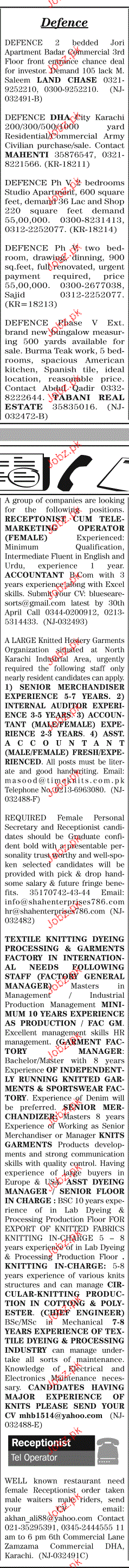 Receptionist, Marketing Staff and Garment Staff Wanted