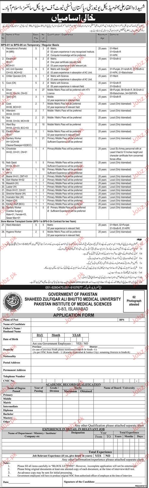 Receptionist, Plumber, Electricians, Drivers Job In PIMS