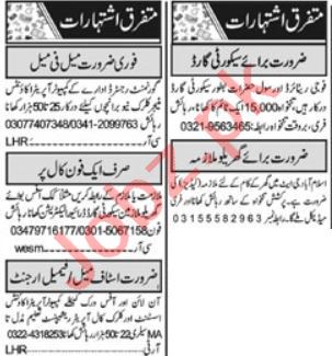 Salesman, Insurance Agent, Sales Officer, Cook, Security Guard, Watchman, Driver, Kitchen Helper, Dish Washer, Loader, Waiter, Receptionist, Supervisor, Chef, Maid, Clerk, Admin Officer, Data Entry Operator, Cashier, Manager, Sales Staff seeks in well developed companies.